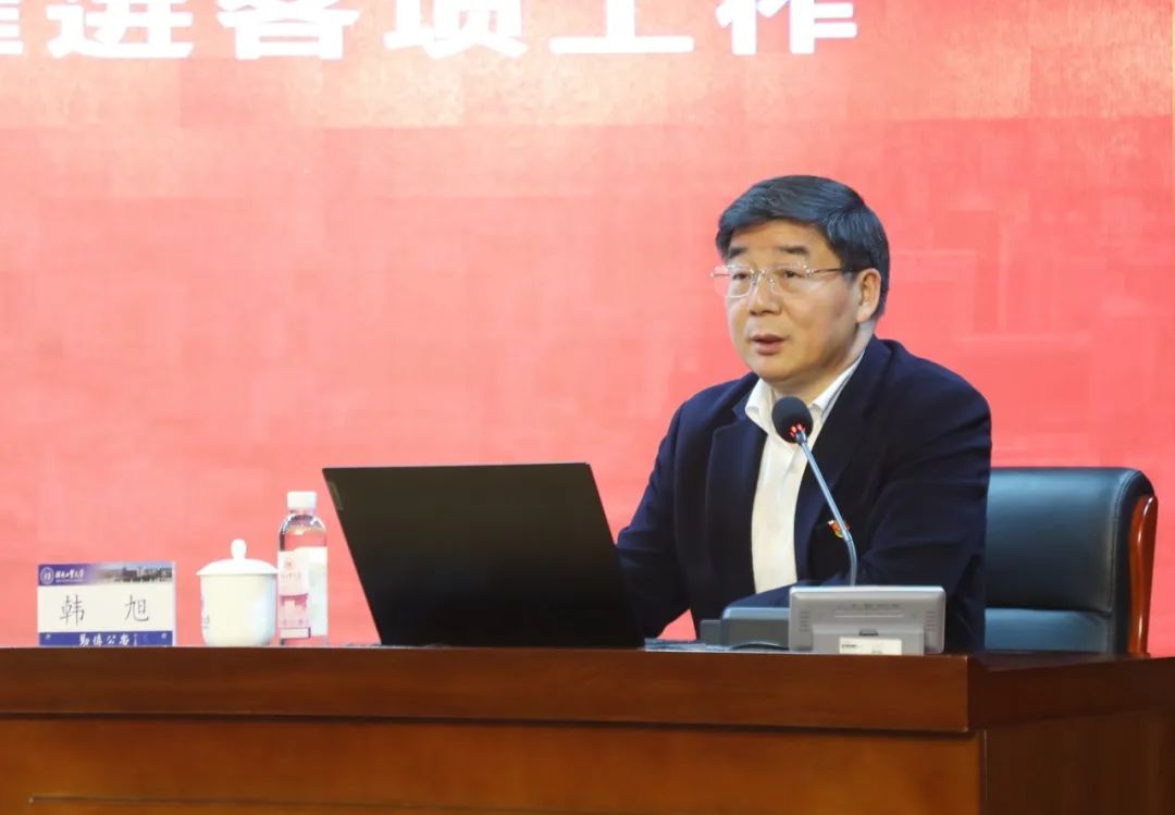 韩旭指出,学习宣传贯彻习近平总书记重要讲话精神和全国两会精神是当前和今后一段时期的首要政治任务,全校师生要把思想和行动统一到习近平总书记重要讲话精神和党中央重大决策部署上来,不折不扣抓好贯彻落实,以实际成效忠诚捍卫“两个确立”、坚决做到“两个维护”,并提出三点要求。