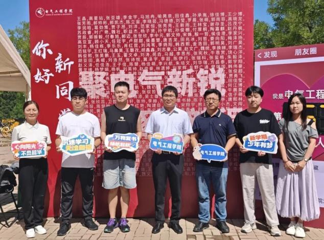 “璀璨青春,电启新程”。这里的每一处细节都充满温度,既有领导的殷切嘱托与暖心问候,也有学长学姐的耐心指引与微笑守候,“与电气的第一帧合影”,定格2025级学子崭新的梦想起点。