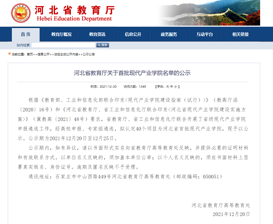 此外,智能汽车产业学院与电子信息现代产业学院、先进装备金属材料产业学院共同入选河北省首批现代产业学院。