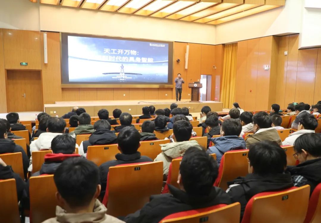 下午,学术报告会在机材楼一楼报告厅举行。唐剑作了题为“天工开万物-大模型时代的具身智能”的精彩报告,深入解读大模型时代具身智能的的应用前景和发展趋势,为参会人员带来前沿学术理念和技术思路。