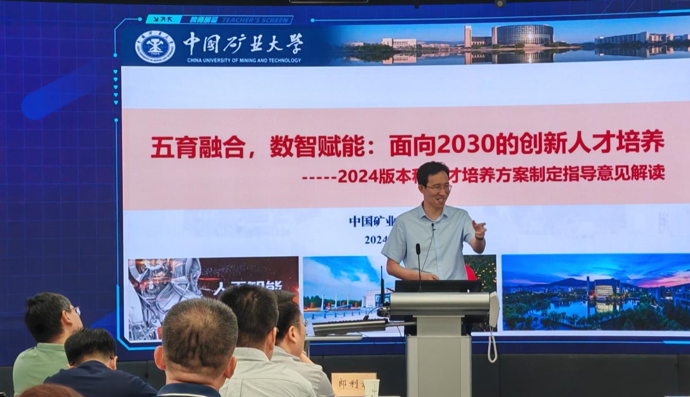 石礼伟以《数智化转型背景高校人才培养方案创新和优化的策略与路径》为题,从高等教育数智化转型势在必行、专业内涵建设和培养方案优化、中国矿大2024版人才培养方案、知识图谱和AI赋能的智慧课程四个方面,由宏观到微观深入浅出的讲解了本科人才培养方案优化制订的经济技术发展时代挑战、国家政策要求举措、实施路径解析、中国矿大方案、数智课程建设经验,为beat365中文官方网站的本科人才培养方案制订提供了经验参考和设计指导。