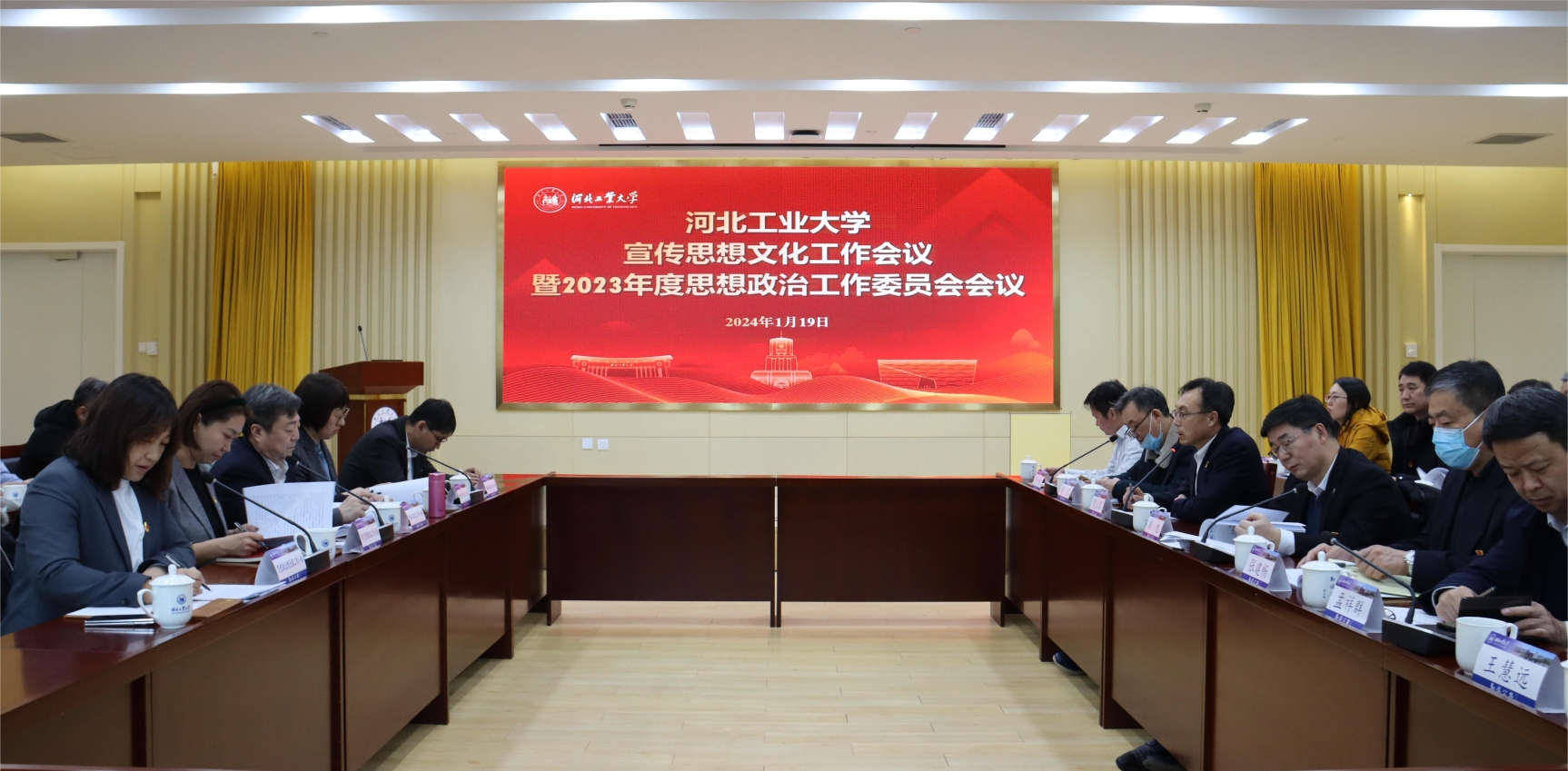 1月19日,beat365中文官方网站召开宣传思想文化工作会议暨2023年度思想政治工作委员会会议。围绕党的二十大以来学校的宣传思想文化工作进行分析研讨,并就2024年工作进行研究部署。全体在津校领导,思政工作委员会成员单位负责人参加会议。党委副书记贺立军主持会议。