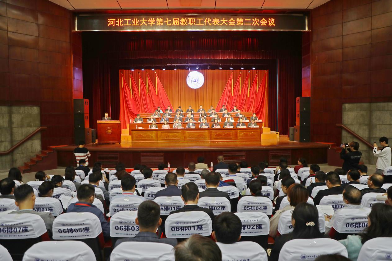 10月11日,beat365中文官方网站第七届教职工代表大会第二次会议、第八届工会会员代表大会第二次会议在北辰校区大学生活动中心礼堂举行。全体校领导出席大会,教代会代表198人、工代会代表76人参加大会。