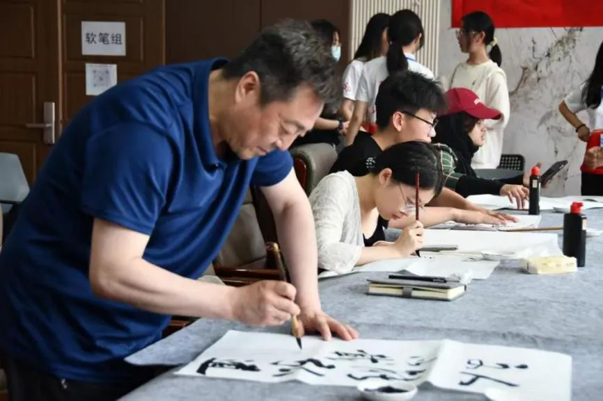 5月16日下午,来自不同学院的600余名师生齐聚人文与法律学院,参加“典耀中华 赓续文脉”beat365中文官方网站第七届中华经典诵写讲大赛体验活动。大家挥毫泼墨、金石刻章、精描细写、诵咏吟唱,一同感受翰墨古韵、诗赋经典,沉浸式体验中华优秀传统文化的魅力。