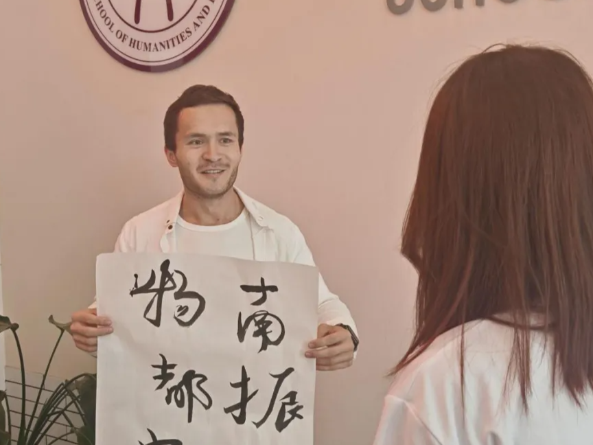 国际学院的丹尼尔同学用中文说道:“今天的活动非常好,大家都在一起体验不同的艺术创作活动。我也学习了用毛笔写汉字和其他的东西。我希望未来可以参加更多这样的文化体验活动,写自己喜欢的汉字,学习了解更多的中国文化,和大家一起交流。”