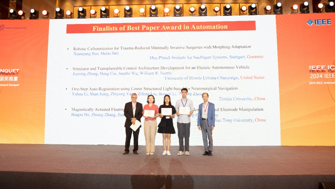 经大会论文评审委员会评审,本届大会共评选出最佳会议论文奖、Toshio Fukuda机电一体化主题最佳论文奖、自动化主题最佳论文奖、最佳学生论文奖等奖项。