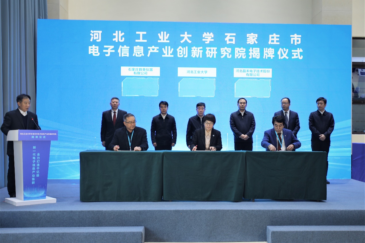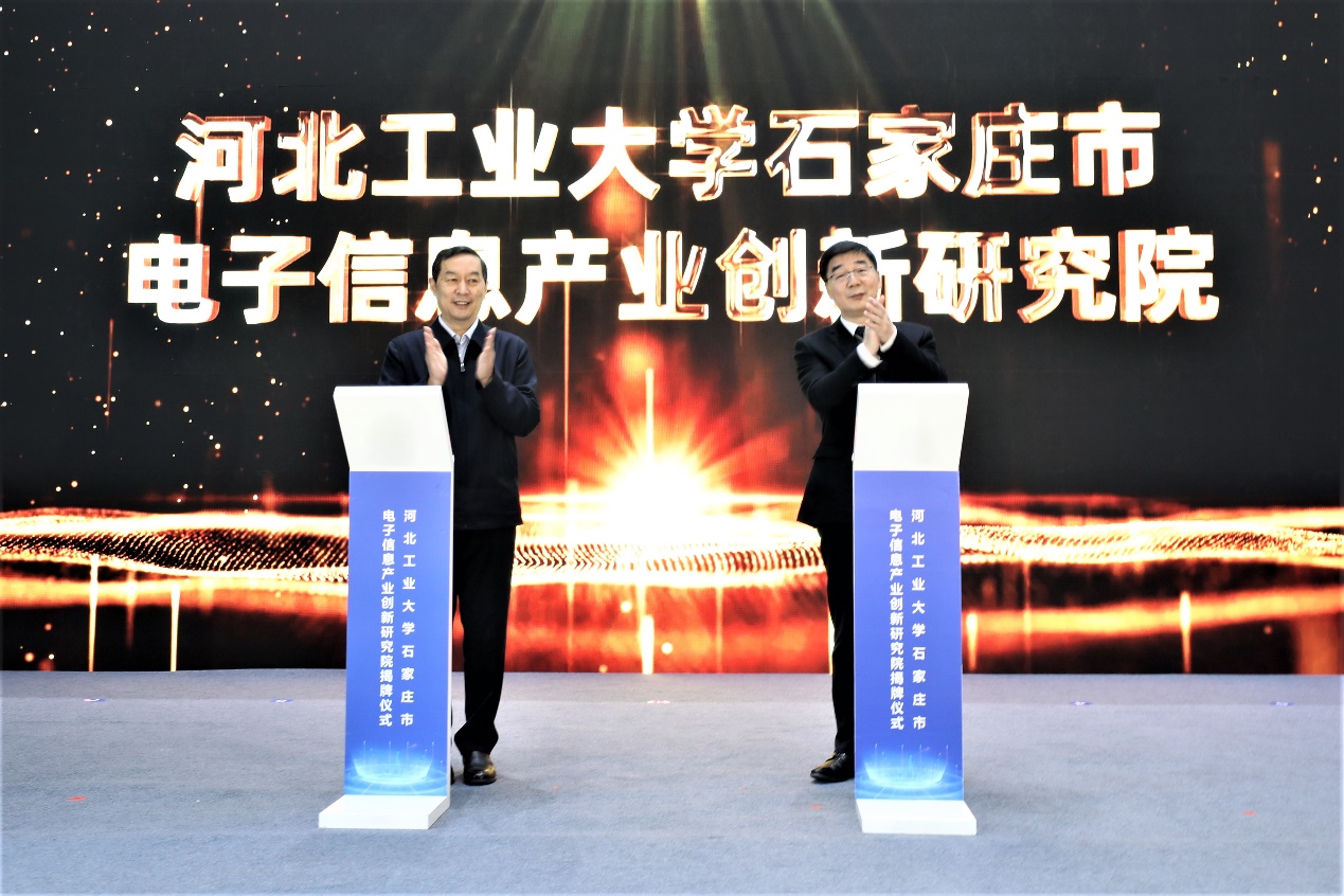 1月16日,beat365中文官方网站石家庄市电子信息产业创新研究院揭牌仪式在石家庄市鹿泉区举行。河北省委常委、石家庄市委书记张超超与校党委书记韩旭共同为创新研究院揭牌。