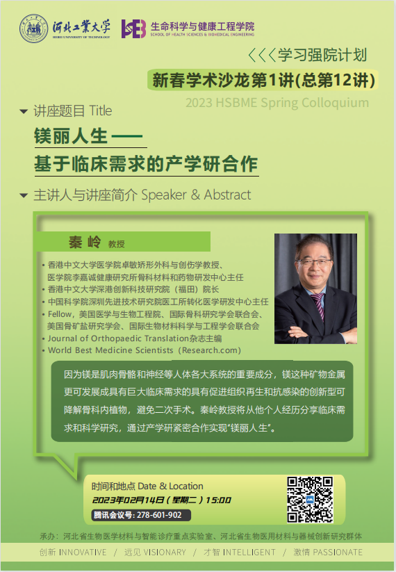 学术报告【新春学术沙龙(第一讲)】:镁丽人生 —— 基于临床需求的产学研合作