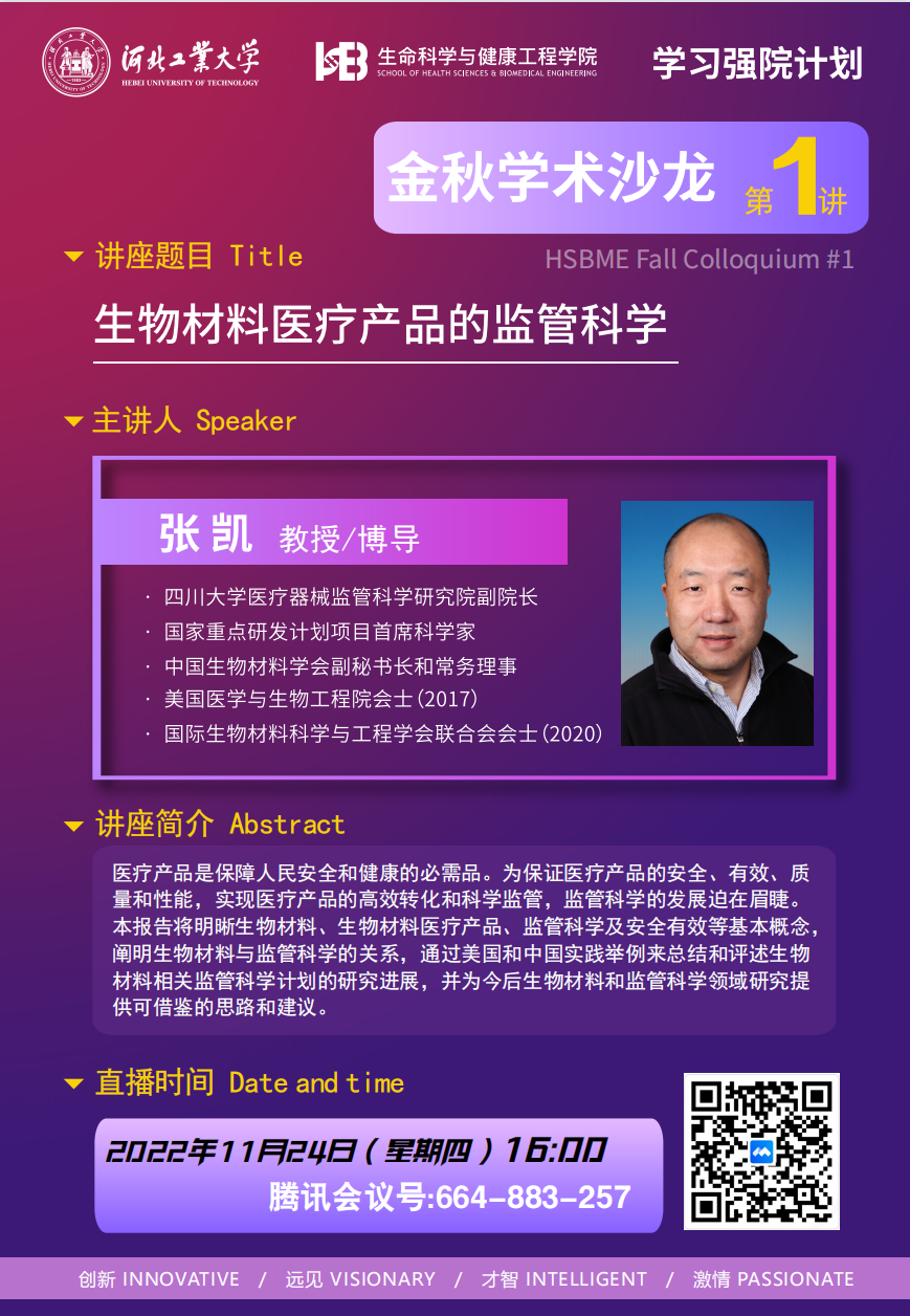 学术报告【金秋学术沙龙(第一讲)】:生物材料医疗产品的监督科学
